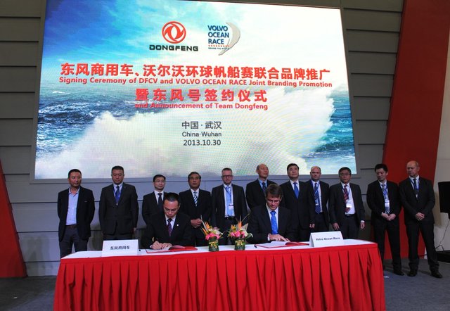 10月30日,東風(fēng)商用車有限公司(以下簡稱:東風(fēng)商用車)與沃爾沃環(huán)球帆船賽在湖北武漢簽署了聯(lián)合品牌推廣協(xié)議,正式命名“東風(fēng)號(hào)”帆船將作為中國唯一賽船,參加2014--2015年度沃爾沃環(huán)球帆船賽。至此,“東風(fēng)”品牌商用車的全球市場(chǎng)推廣戰(zhàn)略加速實(shí)施。