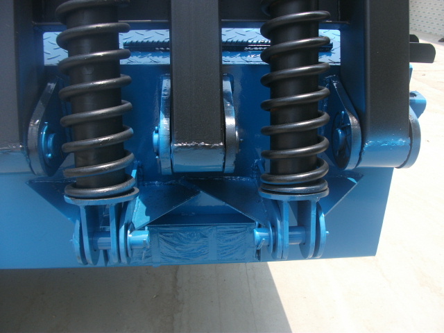 第二重要的主部件就是爬梯。爬梯現(xiàn)在都是雙邊雙簧,檢驗(yàn)爬梯是否好用的標(biāo)準(zhǔn)就是是否結(jié)實(shí)和靈活。所謂的靈活就是不笨重,標(biāo)準(zhǔn)就是一個(gè)成年男性可以獨(dú)自翻起和落下,這樣說(shuō)明各個(gè)爬梯軸,彈簧,卡梢等位置是經(jīng)過(guò)精心設(shè)計(jì)的,說(shuō)明細(xì)節(jié)做到位了參數(shù)設(shè)計(jì)合理才能好用。至于是否結(jié)實(shí),肉眼也能看出端倪:爬梯放下后是斜坡,挖機(jī)上車(chē)的時(shí)候有一定的沖擊力,而且整個(gè)挖機(jī)的重量都將壓在爬梯上。所以爬梯的用料一定要實(shí)在。一般好質(zhì)量的平板運(yùn)輸車(chē)爬梯都是每邊采用三根80X120mmX6mm的方筒型鋼制作,如下圖:這樣才能確保經(jīng)久耐用。部分廠家節(jié)約了中間一根方筒改用C型槽鋼代替,雖說(shuō)可以節(jié)約一部分成本,但是長(zhǎng)期沖擊爬梯必然變形。爬梯變形后導(dǎo)致彈簧扭曲,爬梯無(wú)法翻起落下,到時(shí)候再整改或者加固非常麻煩。