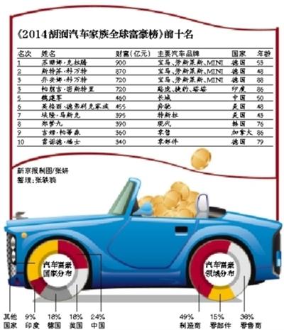 胡潤(rùn)全球汽車(chē)富豪榜昨日發(fā)榜,寶馬汽車(chē)的三位股東包攬榜單的前三名。而中國(guó)有11位富豪上榜,上榜人數(shù)位列世界各國(guó)之首。長(zhǎng)城汽車(chē)董事局主席魏建軍(點(diǎn)擊查看最新人物消息) 以460億元的財(cái)富位列中國(guó)汽車(chē)大王之首。而傳統(tǒng)汽車(chē)強(qiáng)國(guó)日本卻無(wú)一人入選。這是胡潤(rùn)研究院首次發(fā)布汽車(chē)富豪榜。