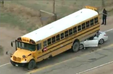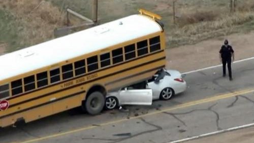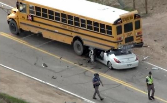 這張圖可以看到,豐田小轎車幾乎整個鉆到了美式校車車底下,將美式校車尾部頂起來了。小轎車幾乎被摧毀,但是校車卻毫發(fā)無傷,甚至連外殼都只有很小的變形。這是因為美式校車的底盤都比較高,離地間隙高。而且厚重,防撞鋼梁都非常規(guī)整結(jié)實。起到保護(hù)車內(nèi)乘客在受到撞擊的時候不會受到太大傷害。