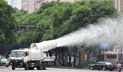 5月9日,陜西西安,新城區(qū)市容園林局引進(jìn)一臺(tái)大型霧炮車,并在新城廣場(chǎng)進(jìn)行調(diào)試,霧炮顯示出超長(zhǎng)的射程。其實(shí)此車在專用汽車廠家湖北俊龍專用汽車有限公司已經(jīng)量產(chǎn)數(shù)年了。