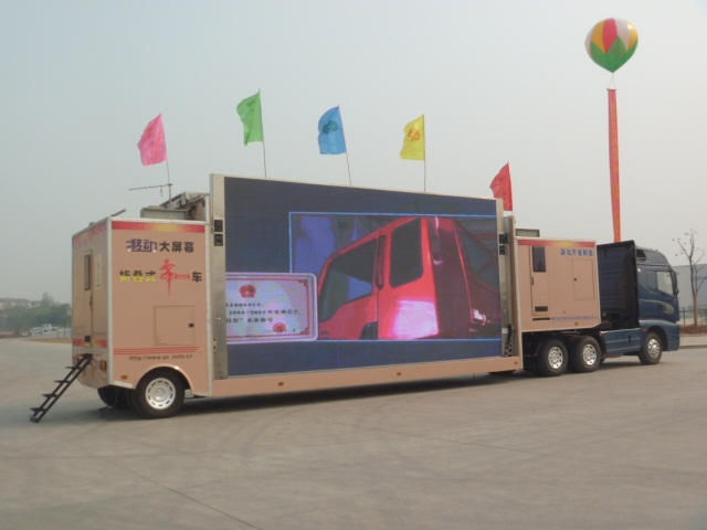 升級版是LED電子屏式,搭配發(fā)電機組和電腦,播放宣傳片、廣告片等。造價相對較高。但是回報率也非常高,比卷簾式更容易吸引人的眼球。一般來說根據(jù)車型的大小,可以做到不同尺寸的LED液晶顯示屏,有單色和彩色。彩色的又有不同的色深和像素點距,搭配不同功率的發(fā)電機組和電腦及散熱系統(tǒng)組成。價格也根據(jù)車型不同差別較大。