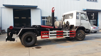 大中型鉤臂垃圾車配合加強車廂,可以實現(xiàn)甩廂運輸(何為甩箱運輸呢?甩箱運輸是指在普通載貨汽車底盤上加裝舉升裝置,在不靠外力的情況下,在貨物裝卸作業(yè)點卸下所裝載的交換集裝箱,裝上其他交換集裝箱繼續(xù)運行的運輸組織方式),取代自卸車部分功能,并且節(jié)約裝卸料時間。