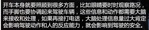 據(jù)統(tǒng)計部門稱,目前有7成左右的交通事故皆因某一方駕駛員分神而導致。在開車時使用手機的司機剎車反應速度要慢19%,尤其是當司機騰出手撥打手機或者視線偏離正前方時,難以掌控方向盤以應對轉彎或者路線變化,極易引發(fā)交通事故。此前新交規(guī)也明確:司機駕駛機動車有撥打、接聽手持電話等妨礙安全駕駛的行為,一次記2分,處20元以上200元以下罰款。