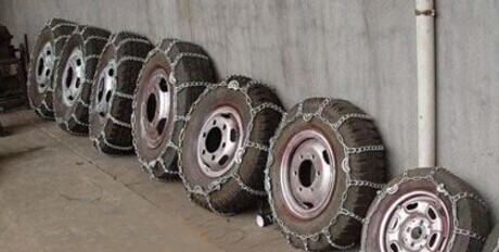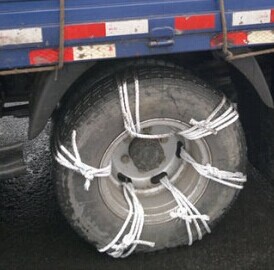 冬季北方由于雨雪冰凍天氣路上常會(huì)有積雪結(jié)冰,為保證行車安全,會(huì)在驅(qū)動(dòng)輪上裝上防滑鏈。市場(chǎng)上主流的防滑鏈主要有鐵鏈、牛筋鏈、橡膠鏈和鋼絲繩防滑鏈。目前卡車上應(yīng)用最多的就是鋼鐵材質(zhì)防滑鏈。優(yōu)點(diǎn)是耐用、防滑效果好、價(jià)格便宜。缺點(diǎn)是對(duì)輪胎損傷較大,噪音較大。(牽引車最好帶兩套)