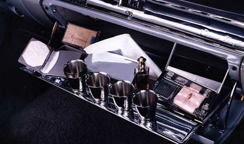 對于男士而言,車內(nèi)小小的點(diǎn)煙器十分貼心,但你還沒見過更貼心的??纯?957款凱迪拉克Eldorado Brougham,它的手套箱被布置成了一個(gè)迷你酒吧!開車?yán)哿?來杯威士忌解解乏吧。