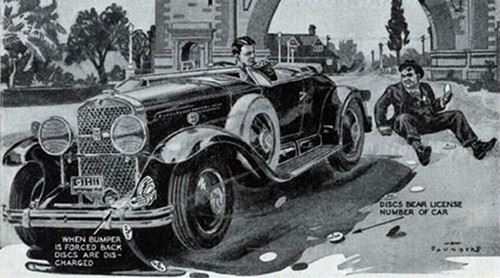 還是美國的《大眾機(jī)械》,1931年登出這樣一個(gè)發(fā)明:在車頭安裝一套記有車主姓名和駕照號碼的身份牌,一旦撞到行人,這些身份牌就會(huì)自動(dòng)彈出,受害人只需要見到一個(gè)身份牌,就可將肇事者繩之以法。
