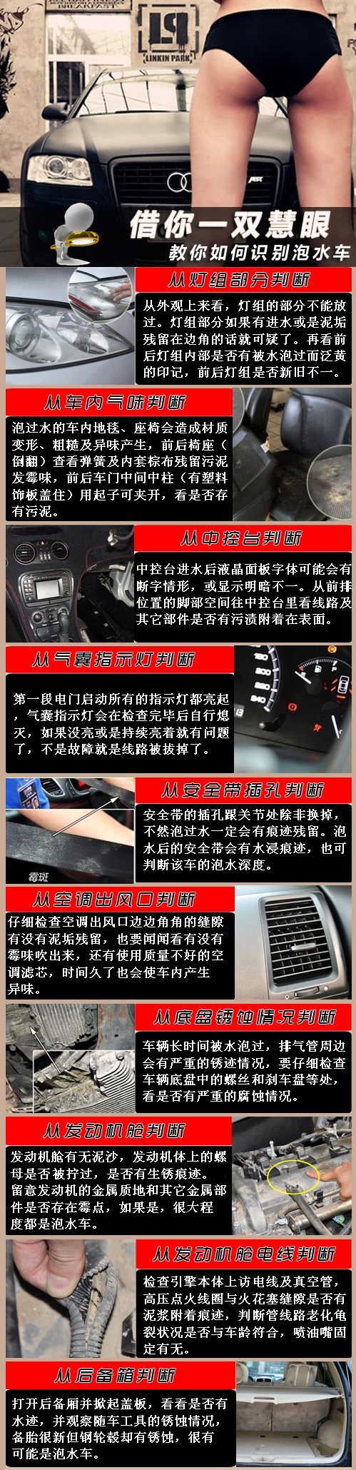 最近這些年氣候惡化,經常出現“水浸街”的現象。每年各地都會出現很多“泡水車”。不管是吸污車吸糞車還是灑水車垃圾車等環(huán)衛(wèi)車乃至小轎車客車,泡過水自然都會對質量有所影響。對電路,金屬防銹等部分,油路水路氣路,發(fā)動機變速箱等密封都會有一定影響,當然也會影響到二手吸污車等二手車的價值。那么怎么分辨“泡水車”,讓您買二手車不吃虧呢?吸污車廠家一張圖教您巧識別。