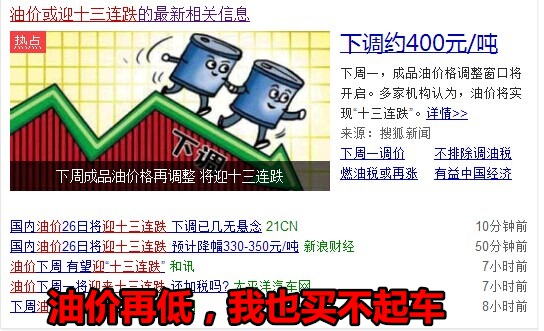 由于國(guó)際貨幣基金組織(IMF)下調(diào)全球經(jīng)濟(jì)增速預(yù)期,加上原油供應(yīng)充裕,國(guó)際油價(jià)20日再次大幅下跌。分析認(rèn)為,由于國(guó)際油價(jià)跌勢(shì)兇猛,國(guó)內(nèi)油價(jià)在下周一有望再次迎來下調(diào),創(chuàng)下史上首次“十三連跌”。