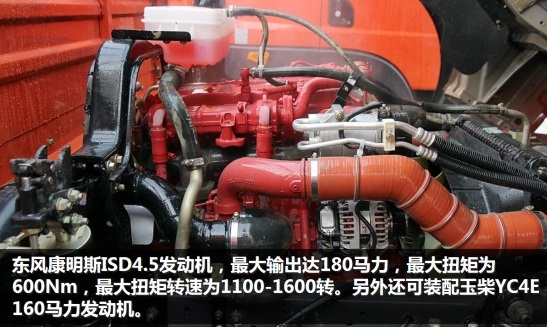 在動(dòng)力方面,與其他輕卡不同,D9在大扭矩小油耗方面卓有成就。來(lái)自東風(fēng)康明斯ISD和玉柴YC4E國(guó)四發(fā)動(dòng)機(jī)均能為D9提供可靠動(dòng)力,最大輸出分別為180和160馬力,最大扭矩分別為600Nm和550Nm。這臺(tái)車(chē)主推低速大扭矩特性,重載能力更強(qiáng)。東風(fēng)輕型車(chē)公司為D9選裝了法士特8JS八擋變速箱,俗稱(chēng)“小八檔”,傳動(dòng)范圍更大,滿(mǎn)足復(fù)雜工況下的行車(chē)需求,與ISD和YC4E相匹配,傳動(dòng)效率更高,同時(shí)也有效降低油耗。兩款發(fā)動(dòng)機(jī)均采用EGR+DOC+POC技術(shù),解決了需要添加尿素的困擾,節(jié)省時(shí)間、節(jié)省費(fèi)用,更適合時(shí)效性強(qiáng)的物流運(yùn)輸。