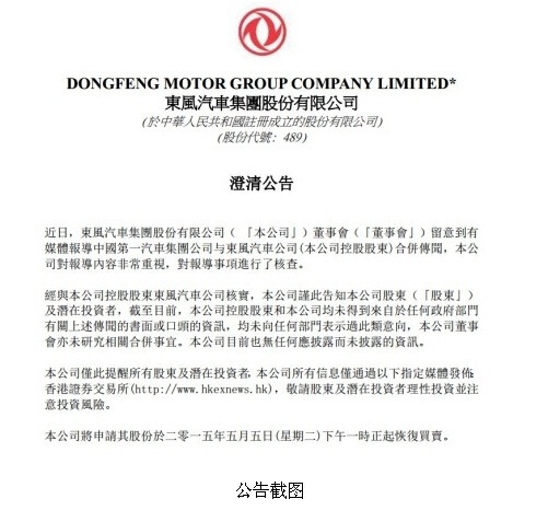 此前,市場上傳聞東風(fēng)汽車與一汽集團正在醞釀合并。受此消息影響,4日東風(fēng)汽車自開盤就處于漲停狀態(tài),報收8.58元,漲幅10%。一汽轎車也漲停,報收25.87元。4日晚,包括東風(fēng)汽車、東風(fēng)電子科技股份有限公司、一汽集團旗下的一汽轎車等多家被此消息波及的上市公司先后宣布停牌。東風(fēng)汽車稱,為保證信息披露的公平、公正,維護廣大投資者利益,避免公司股價異常給廣大投資者造成損失,將待事項核實并刊登公告后復(fù)牌。