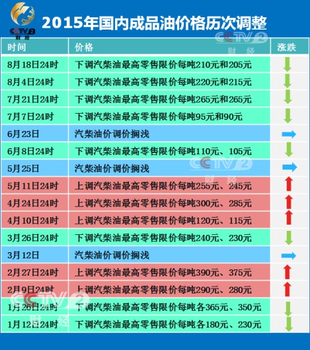 2015年成品油價格歷次調(diào)整