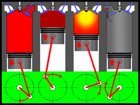 四缸直列式發(fā)動(dòng)機(jī)工作原理圖