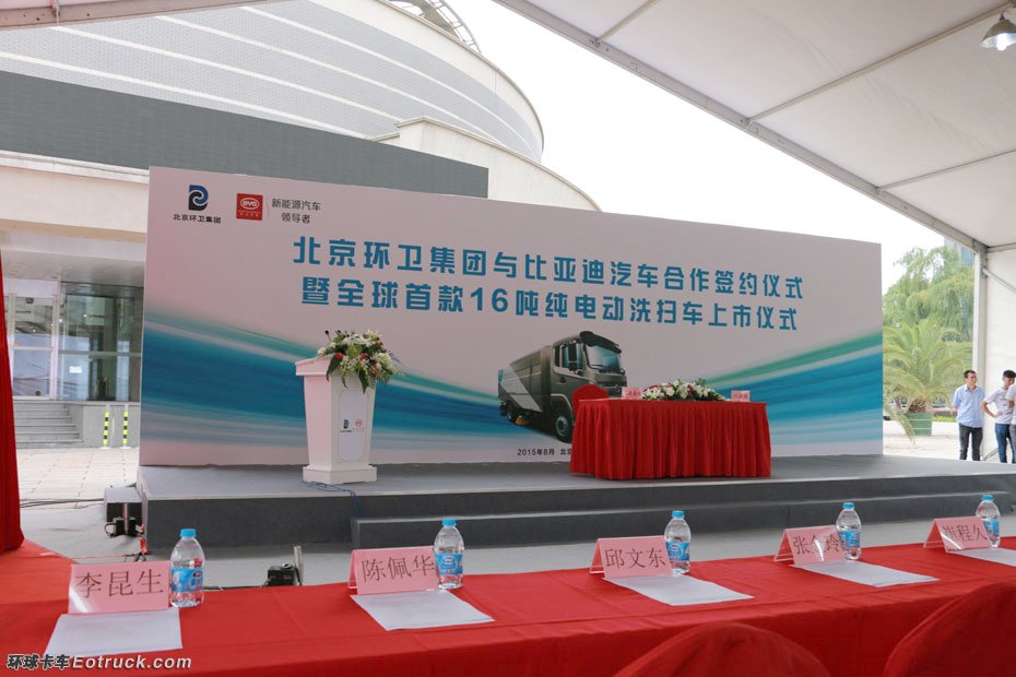 比亞迪的全球電動車戰(zhàn)略再獲新戰(zhàn)績。2015年8月6日,北京環(huán)衛(wèi)集團與比亞迪汽車在北京會議中心舉行合作簽約儀式,雙方將聯(lián)手打造全球首個專注于純電動環(huán)衛(wèi)領域的專用車公司。同時,合資公司打造的全球首款16噸T8純電動洗掃車在北京正式上市,并交付客戶進行路面作業(yè)?;顒蝇F(xiàn)場,合資公司向北京環(huán)衛(wèi)集團第三分公司交付新車鑰匙,25輛T8純電動洗掃車正式投入使用。