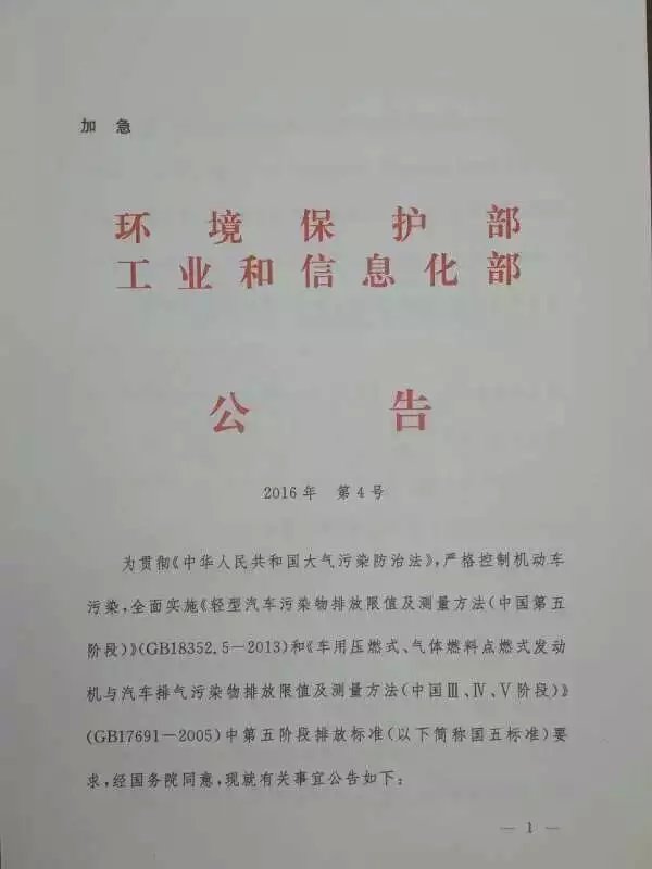 國(guó)五來(lái)了:環(huán)保部工信部關(guān)于國(guó)五實(shí)施的公告