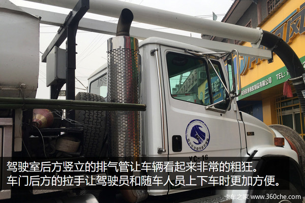 駕駛室后方豎立的排氣管讓車輛看起來非常的粗狂,外面鍍鉻的防燙網(wǎng)能夠防止操作人員在管道清污的時(shí)候被意外燙傷。貫通車門后方的拉手讓駕駛員和隨車人員在上下車的時(shí)候更加方便。引擎蓋可以向前掀起用來對(duì)發(fā)動(dòng)機(jī)以及相關(guān)部件進(jìn)行檢修,橡膠材質(zhì)的膠條固定之后能夠減小車型行駛時(shí)引擎蓋的震動(dòng)噪聲。