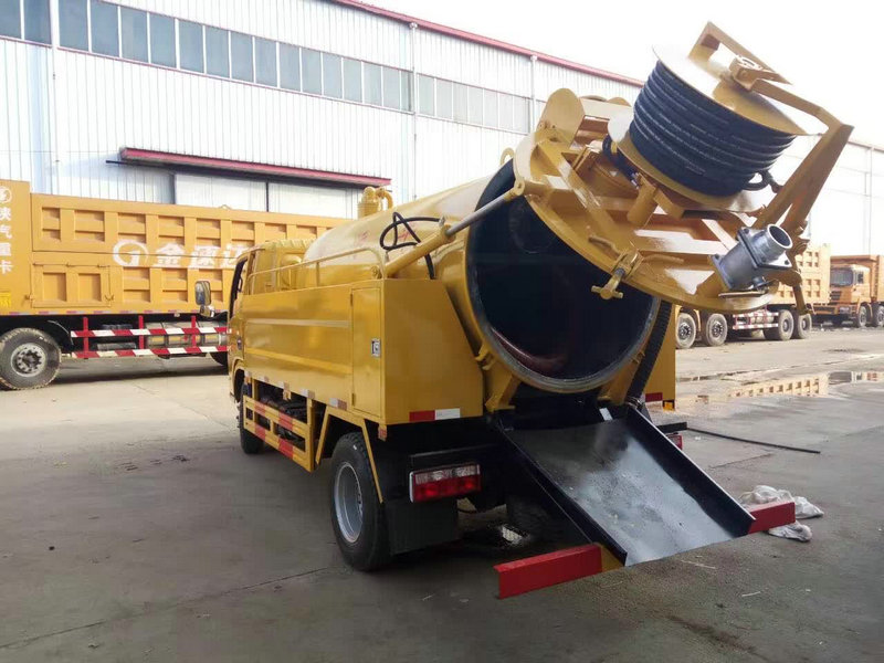 此車3300軸距,寬度1900左右。車型適中。吸污車的污水罐位于中間位置,容積3立方以上。用來(lái)高壓清洗疏通的清水箱邊掛在污水罐兩側(cè),容積2立方左右。清水罐的高壓清洗疏通和污水罐的吸污車功能兩用,互相配合,3+2立方的容積滿足大部分工況的使用。是您的最佳選擇。