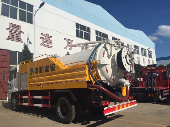 聯(lián)合疏通車是由二類汽車底盤、取力器、清水箱、污水吸污罐、高壓水泵、真空泵、液壓控制裝置、機(jī)械絞拉裝置、高壓沖洗管道、真空吸污管道、排污系統(tǒng)組成。