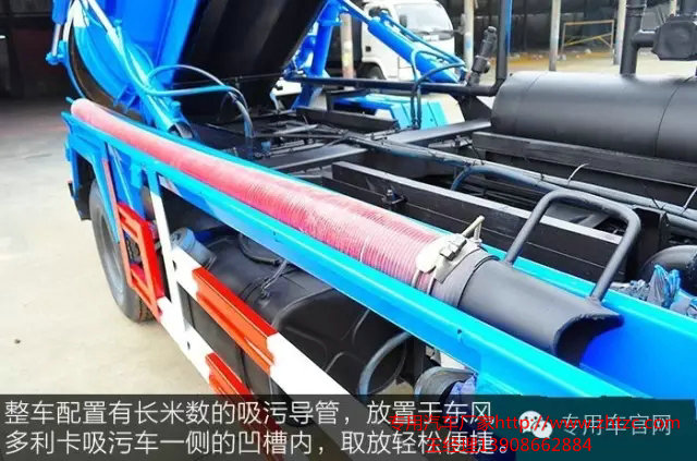 整車配置有長米數(shù)的吸污導(dǎo)管,放置于東風(fēng)多利卡吸污車一側(cè)的凹槽內(nèi),取放輕松便捷。