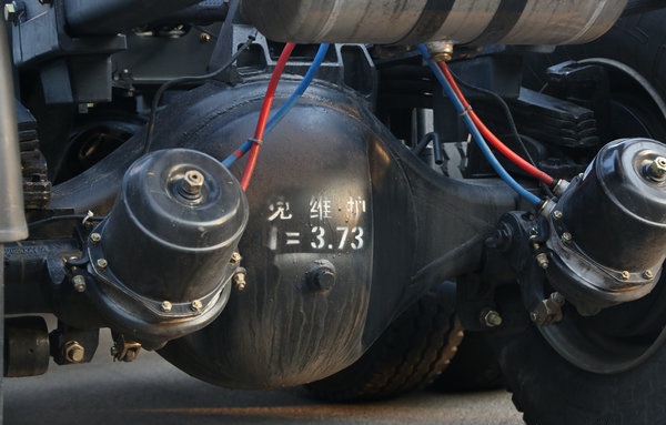 如上面的圖片所示,后橋的減速比為3.73,意思是傳動軸轉動3.73圈,后輪轉動1圈。嚴格意義上來說,后橋速比應該是盆齒輪齒數(shù)除以小錐齒輪齒數(shù)得出,如果是多級減速的話還需要加乘其他減速級的系數(shù)。