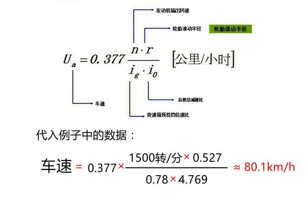 這個公式需要的數(shù)據(jù)有發(fā)動機的轉速、輪胎滾動半徑、變速箱速比和驅動橋速比這四個數(shù)據(jù),計算方式也更加簡單。