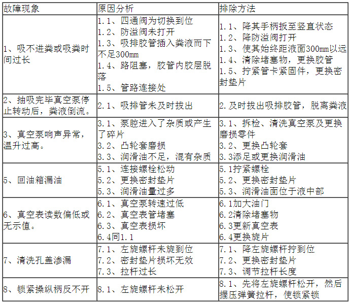 吸糞車(chē)故障現(xiàn)象 原因分析 排除方法