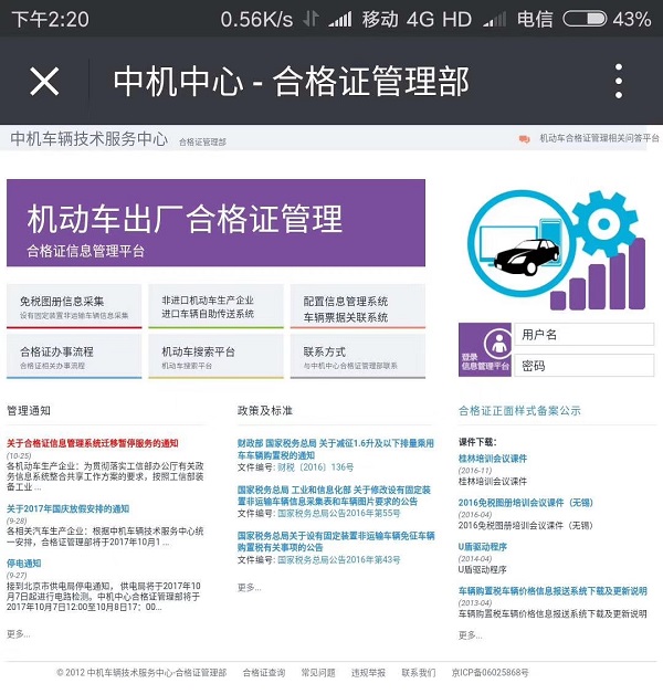 公司新聞當前位置:首頁> 新聞資訊 >> 公司新聞 >> 中機中心系統(tǒng)升級 車輛上戶、合格證上傳滯緩