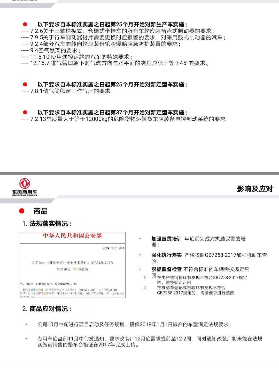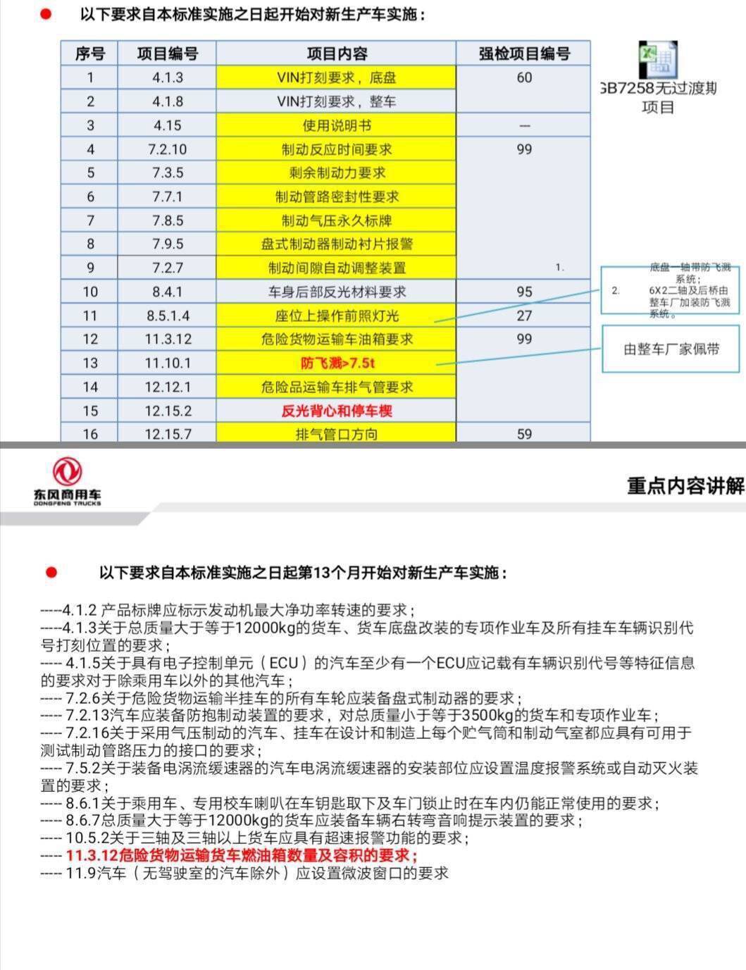 由于新GB7258-2017在2018.1.1起開始實(shí)施,法規(guī)要求所有車型需增加VIN打刻要求、防飛濺系統(tǒng)、剎車自動(dòng)調(diào)整臂、前照燈高度調(diào)整裝置、儲(chǔ)氣筒氣壓標(biāo)牌、制動(dòng)襯片更換報(bào)警裝置(危險(xiǎn)品車輛)、反光背心和停車楔等,倉(cāng)柵車要求蓬桿焊死!