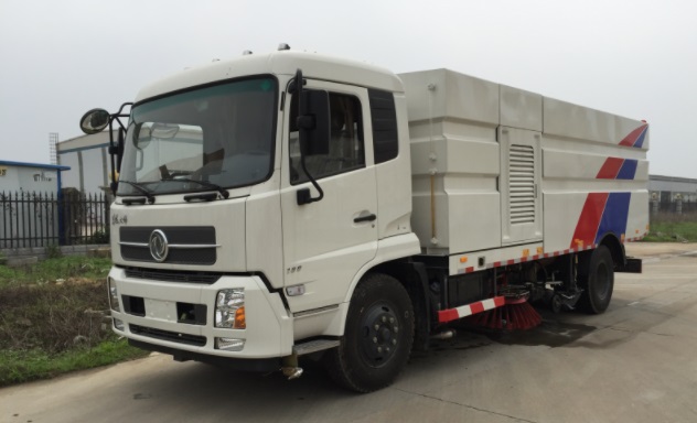 東風(fēng)天錦洗掃車采用東風(fēng)天錦國五二類底盤改裝,加裝副發(fā)動(dòng)機(jī)、風(fēng)機(jī)、高壓水泵、清水箱、垃圾箱、左右立掃、帶噴水桿的寬吸嘴、低壓沖洗系統(tǒng)、垃圾箱自潔,掃盤降塵系統(tǒng),液壓系統(tǒng)、專用裝置電控系統(tǒng)和副車架等改裝而成。