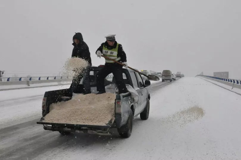 今天環(huán)衛(wèi)車廠家重點給大家介紹防止和減緩道路冰凍的利器:融雪劑,工業(yè)融雪鹽和其配套的融雪鹽撒布機。
