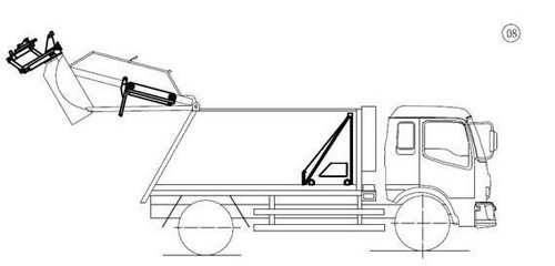 2.壓縮式垃圾車掛上垃圾桶,旋轉(zhuǎn)翻桶操作旋鈕至右上翻位置,垃圾桶向上翻轉(zhuǎn),垃圾自動(dòng)卸入圓弧形斗體內(nèi),松開旋鈕回中位;