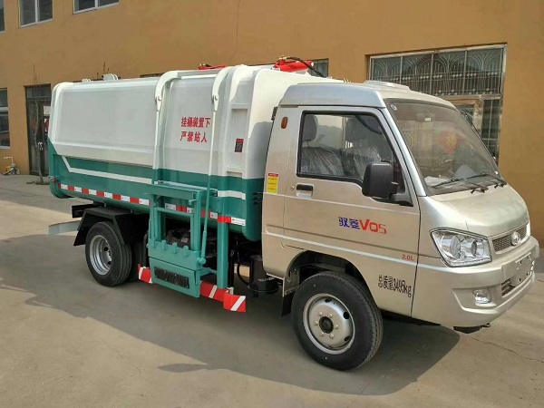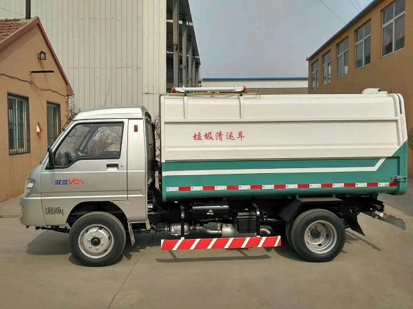 掛桶式垃圾車是垃圾車中的一個重要分支。主要組成結(jié)構(gòu)是自卸式箱體帶有掛桶提升機,可以方便的自裝卸120L/240L等不同規(guī)格的標(biāo)準(zhǔn)垃圾桶。小型的藍牌掛桶式垃圾車(自裝卸式垃圾車)容積3立方左右,高度2米以內(nèi),適合下地下室收集轉(zhuǎn)運生活垃圾。但是優(yōu)于汽油車所配變速箱一般較小,大多不帶取力器接口,很多時候制作掛桶式垃圾車的時候,液壓系統(tǒng)取力都是用電磁取力器取力,然后用皮帶驅(qū)動液壓泵工作。正常情況下尤其是南方地區(qū)工作都沒有問題,在北方尤其是極寒地區(qū),橡膠制作的皮帶會在低溫環(huán)境下變脆,長時間工作后會疲勞,容易斷裂,影響生產(chǎn)。針對這一情況,垃圾車廠家和底盤上家合作,推出了幾款帶有取力器接口的小型掛桶式垃圾車底盤。今天給大家介紹的是福田馭菱汽油后雙輪掛桶式垃圾車。