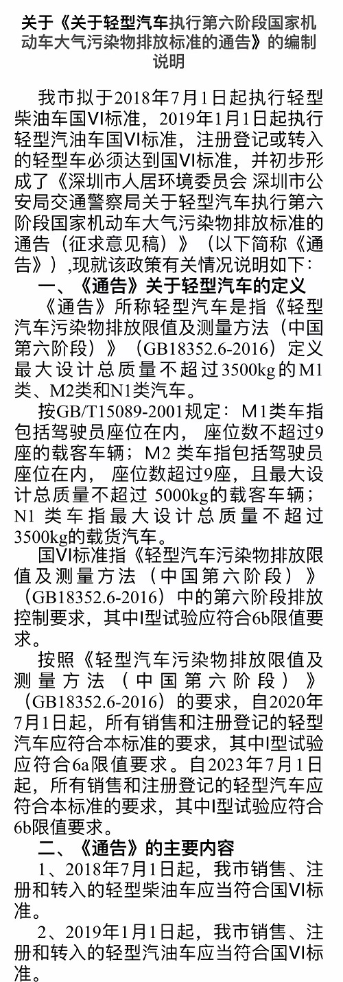 4月2日,深圳市率先發(fā)布《征求意見稿》,要求深圳將于2018年7月1日起正式執(zhí)行輕型柴油車國Ⅵ標(biāo)準(zhǔn),2019年1月1日起執(zhí)行輕型汽油車國Ⅵ標(biāo)準(zhǔn),并且注冊登記或轉(zhuǎn)入的輕型車必須達(dá)到國Ⅵ標(biāo)準(zhǔn)。這也就是說,不達(dá)到國六排放標(biāo)準(zhǔn)的車輛將不能登記銷售!