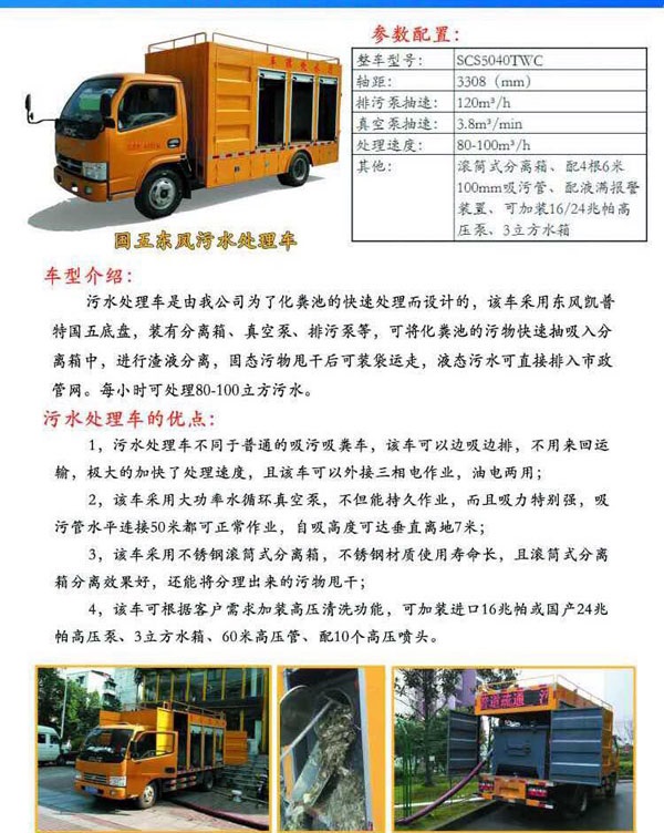 東風藍牌污水處理車性能特點