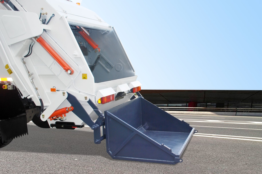 既然是后裝壓縮式垃圾車,顧名思義垃圾一般都是從車輛后部裝載到車廂的。但是后裝的結構樣式也有很多種。為了配合用戶現(xiàn)有的收集方式,一般可以分為120L/240L國標方形垃圾桶、240L/300L圓鐵桶、裝料斗、擺臂等結構。