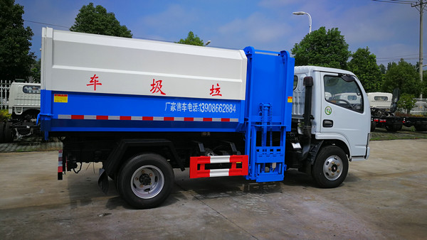 側(cè)裝壓縮式垃圾車因為內(nèi)部有壓縮推鏟,所以不能講提升機(jī)凹入箱體內(nèi),這樣的話會導(dǎo)致箱體的寬度比同車型的掛桶式垃圾車稍窄一點。