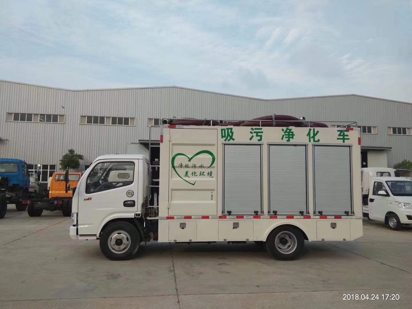 新型吸污凈化車,采用東風(fēng)多利卡國五底盤,裝有副發(fā)動機(jī),污泥螺桿泵(德國進(jìn)口泵,電機(jī)(日本進(jìn)口))全自動藥物箱,半自動藥物箱,電控箱,污水分離箱、疊螺脫水機(jī)等。