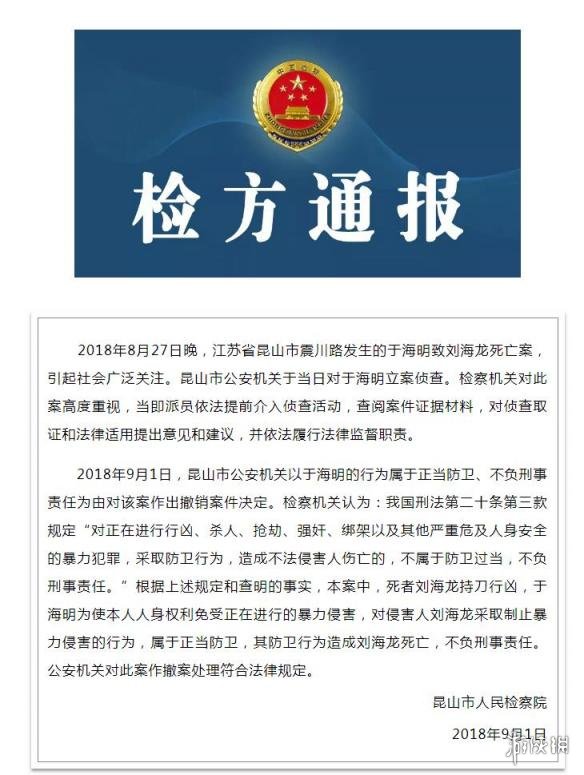 昆山市人民檢察院和昆山市公安局對(duì)昆山反殺案發(fā)布通報(bào)