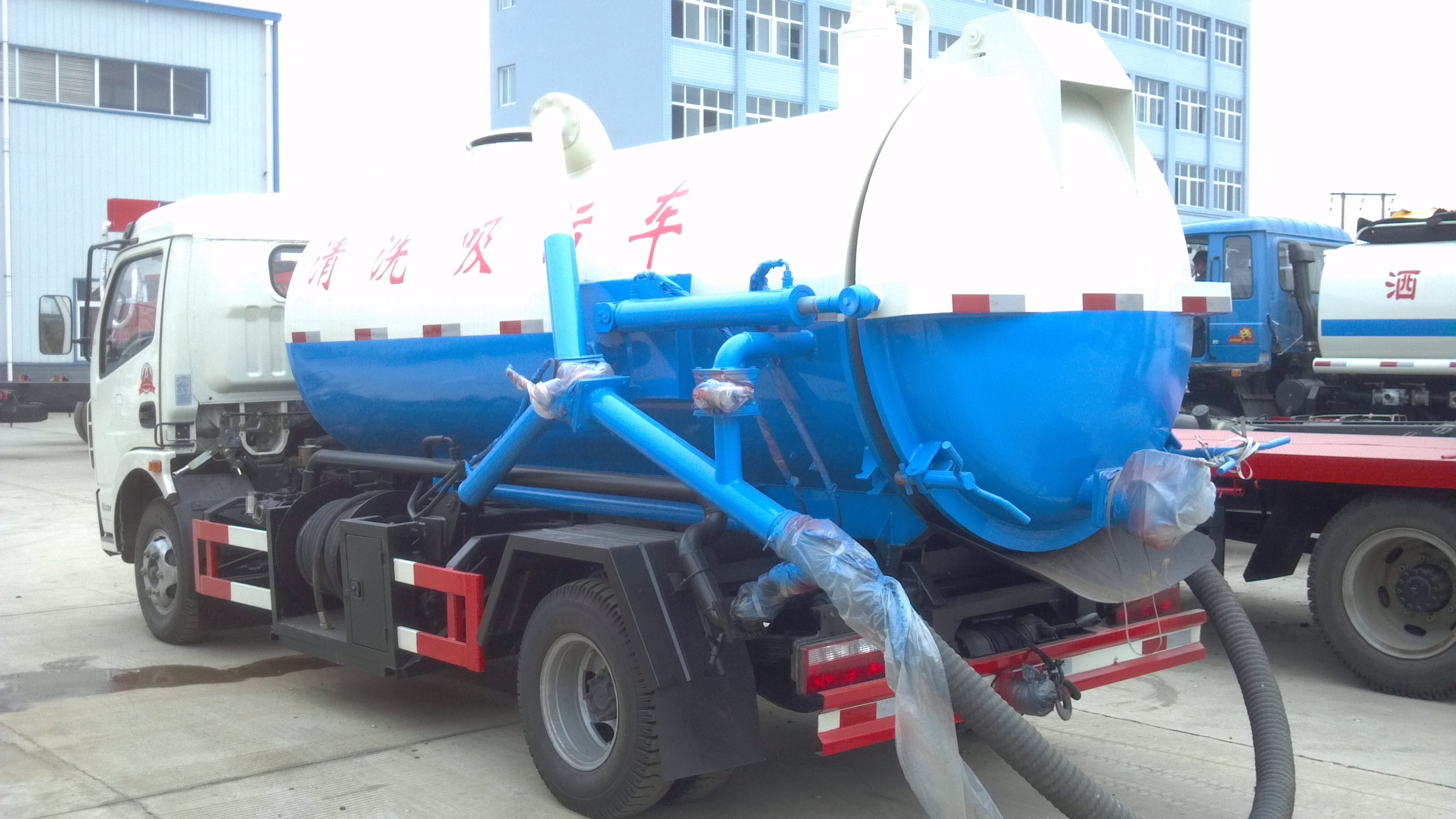 吸污車(chē)后半部封頭可液壓開(kāi)啟和封閉,整個(gè)罐體可液壓撐起自卸,徹底清理罐內(nèi)污物不留任何死角。吸污罐設(shè)計(jì)分液閥,抽取糞液混合物已滿時(shí),固體污物沉降,可打開(kāi)排液閥將液體排出一部分后繼續(xù)抽取固體污物,達(dá)到罐體利用最大化。