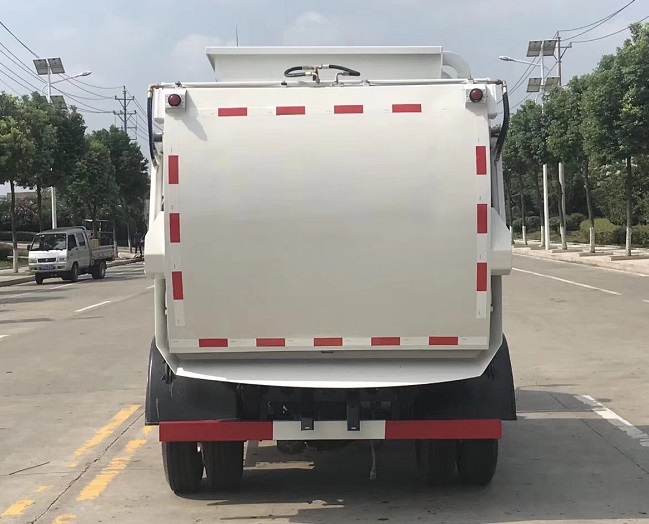 新式餐廚垃圾車尾部裙邊設(shè)計,卸料集中,不飛濺散落,不宜臟地臟人。