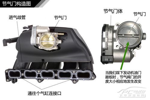 在發(fā)動(dòng)機(jī)進(jìn)氣系統(tǒng)中主要有兩大部件,一是空氣濾清器,主要負(fù)責(zé)過(guò)濾空氣中的雜質(zhì);二是進(jìn)氣管道,主要將空氣引入到氣缸中。而在進(jìn)氣管中有個(gè)很重要的部件,就是節(jié)氣門。