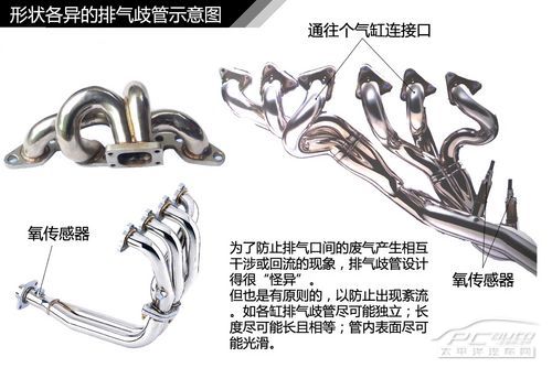 雖然排氣管設(shè)計(jì)的奇形怪狀,但為了防止出現(xiàn)紊流,還是遵循一定的原則的,如各缸排氣歧管盡可能獨(dú)立、長(zhǎng)度盡可能相等;排氣歧管盡可能長(zhǎng)等。