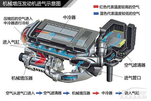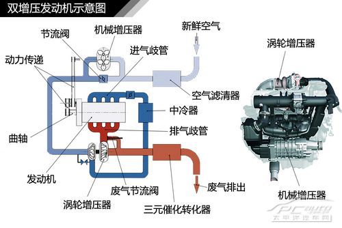 雙增壓發(fā)動(dòng)機(jī)示意圖(渦輪增壓器+機(jī)械增壓器)