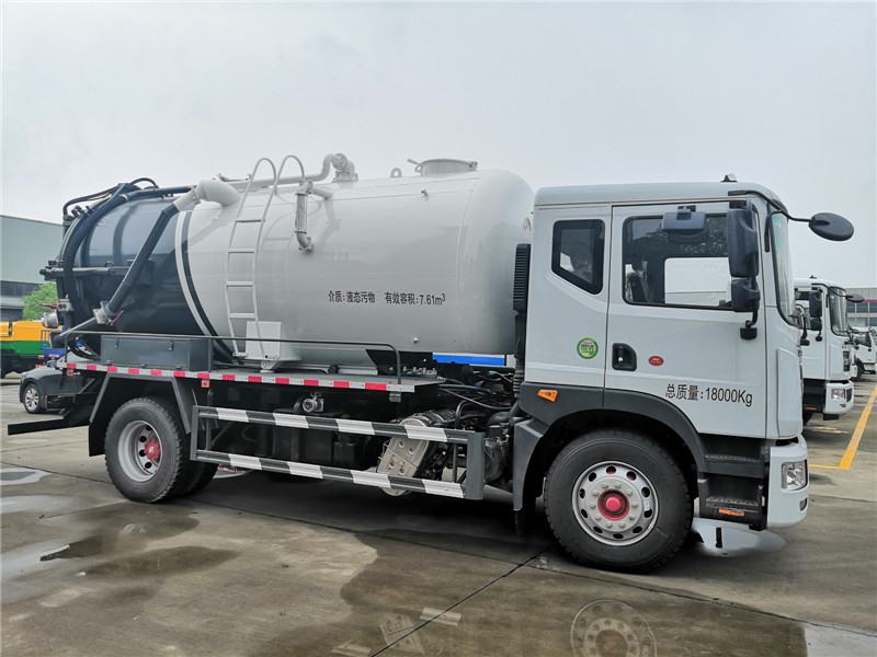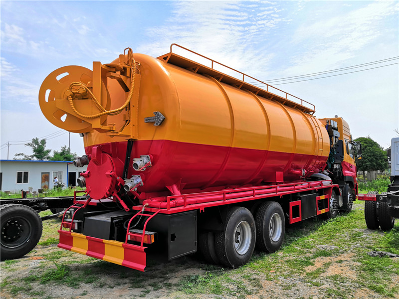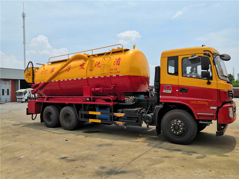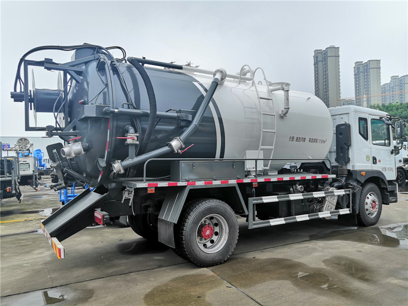 清洗吸污(糞)車(chē)專(zhuān)用裝置配置:德國(guó)高壓泵(16mpa)/  雙耀高壓泵(24 mpa)  ,億豐/偉業(yè)/威龍等吸污(吸糞)車(chē)專(zhuān)用真空泵,常規(guī)配備10個(gè)高壓沖頭,具有自動(dòng)回位功能的收放卷盤(pán),60米長(zhǎng)的高壓管(可根據(jù)需要加長(zhǎng))  ,帶工具箱,加粗型污水位顯示管、清水位顯示管,方便操作人員掌握罐內(nèi)污水、清水的水量,人性化地加裝了防溢閥防止吸污時(shí)罐內(nèi)污水裝滿(mǎn)后進(jìn)入到抽排真空的管道中對(duì)真空泵的損壞,管道回路由水氣分離器、油氣分離器、四通換向閥、真空泵、管道等組成,吸污(糞)罐尾部有自流口、后蓋液壓開(kāi)啟鎖緊裝置更能有效地保證罐體的密封性,排污方式可通過(guò)自流口排放或打開(kāi)后蓋排放,罐體的自卸功能可使排污更快更干凈。