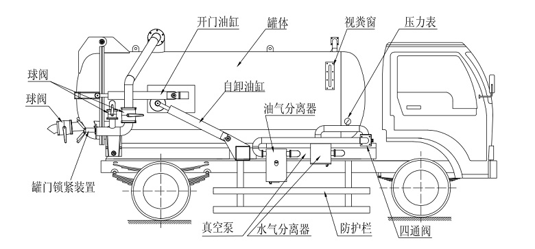上裝配置:專用部分由取力器、傳動軸、真空吸污泵、壓力罐體、液壓部分,管網(wǎng)系統(tǒng)、真空壓力表、視糞窗、洗手裝置等組成,隨車配置大功率真空吸污泵和優(yōu)質(zhì)液壓系統(tǒng),罐體封頭一次壓鑄成型、罐體可后開、雙頂自卸。罐內(nèi)污物可通過后蓋直接傾倒,具有真空度高(比吸糞車的吸力更大)、噸位大、效率高、用途更廣泛等特點。油水分離器,水氣分離器,液壓自卸裝置,專用真空吸污泵,容積壓力表,吸物導管,自流閥,真空罐體,連通器(視糞窗),全自動防溢閥,液壓套件。采用吸污專用泵,吸力大,吸程遠,特別適合用于市政環(huán)衛(wèi),廠區(qū),礦山,小區(qū)等下水道內(nèi)的淤積物的抽吸、裝運和排卸,尤其是可吸下水道泥漿、淤泥、石子、磚塊等較大物體、含水量較小等物質(zhì)。抽滿污(糞)罐體時間:≤5min,吸程:≥10m。自吸自排,壽命長,工作速度快,運輸方便。吸污車與吸糞車具有相同原理,但吸污車又與吸糞車有著不同用途。區(qū)別就在于吸污車罐體為圓形罐,結(jié)構(gòu)更緊密,可以耐更高壓力提供更大的吸力,可用于收集清理運輸污水,污泥。
